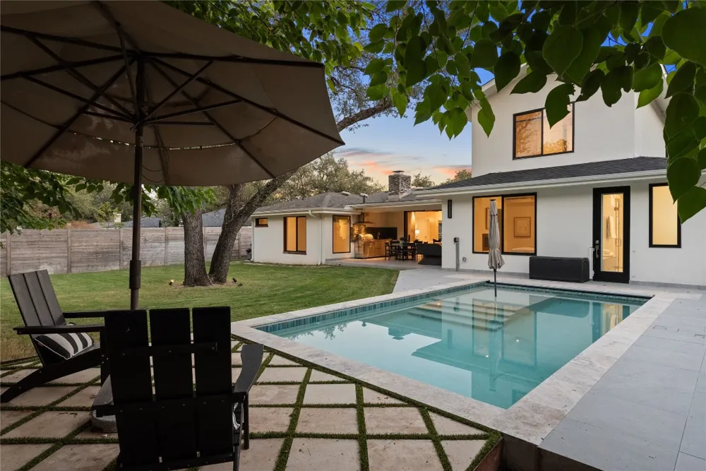 Open Sat 12-2, Sun 2-4! 4000 Greystone sparkles and shines brightly after a thoughtful, thorough renovation. From the heated swimming pool with sitting shelf to the covered outdoor patio with kitchenette and fireplace, this 5 bedroom residence displays quality inside and out. Open concept kitchen and living with oversized kitchen island, Gaggenau appliances, double dishwashers and 6’ beverage fridge create an entertainer’s dream. Three bedrooms downstairs + an office make for almost 1-level living. Spa primary bath has s steam shower, heated floors & towel rack, & direct access to the pool out back.