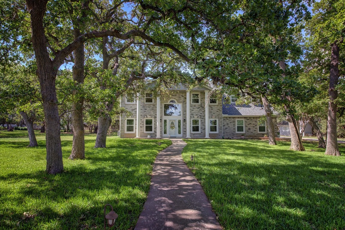 Experience the serenity you have been looking for with this gem of a home! Escape the hustle and bustle of city life and immerse yourself in the idyllic charm of Texas Hill Country living. Nestled on a one-acre, cul-de-sac lot, this recently remodeled to the studs 2378 square foot home invites you to indulge in a life of tranquility and comfort. Located near the famous Salt Lick BBQ, every day here promises a touch of relaxation. As you approach the property, you're greeted by a grove of mature shade trees, a spacious lawn, and the occasional sighting of deer, all against the backdrop of a stately brick colonial-style home. Once inside you are greeted by an abundance of natural light, ensuring that every corner of this home feels welcoming and inviting. The grand wooden staircase stands a remarkable centerpiece, adding a touch of timeless elegance to the space. With four bedrooms and two and a half baths, this home offers more than enough space for your living, entertainment, and relaxation needs. The kitchen and breakfast areas have quartz countertops, with custom cabinets that provide both style and functionality. A walk-in pantry ensures your culinary essentials are always within reach, and stainless-steel appliances complete the functional and updated kitchen design. The primary bathroom is a haven of relaxation, featuring a spa-like ambiance with its frameless shower and indulgent soaking tub. Each bedroom has plenty of storage and natural light. Recent replacements of key components including the roof, HVAC system, tankless hot water heater, windows, and siding provide peace of mind and ease of future maintenance. The backyard serves as a space where you can connect with nature, host gatherings, cultivate a vibrant garden, or simply unwind. More than just a house; it's a lifestyle that embraces beauty. The Hill Country is calling—don't hesitate, make this home yours and start living the life you've dreamed of! Your peaceful retreat awaits.